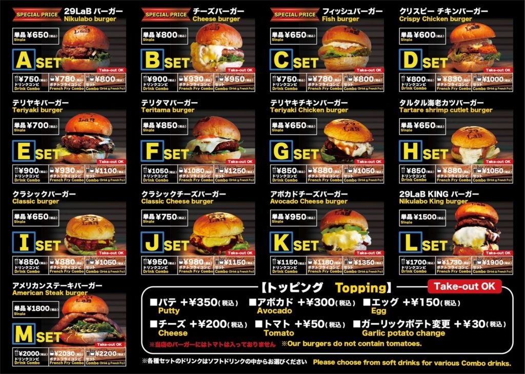 北陸発の29LaB BURGER(ニクラボバーガー)は店内調理にこだわり、おいしさを追求したハンバーガー店です。肉厚のパテにこだわりのバンズ、ボリューム満点、店内調理だからこそのおいしさはコストパフォーマンス抜群です。
